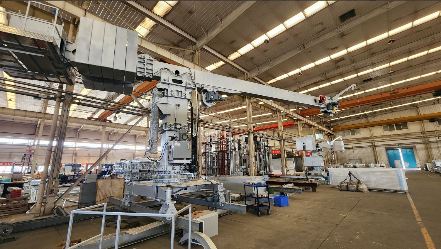 擦窗機(jī)設(shè)備設(shè)計(jì)過(guò)程中,設(shè)計(jì)團(tuán)隊(duì)克服擦窗機(jī)設(shè)備軌道間距偏小、玻璃吊鉤額定載荷要求偏大(額定荷載:999Kg)的難題,精心設(shè)計(jì)、詳細(xì)計(jì)算,圓滿完成設(shè)計(jì)任務(wù),得到了GMP設(shè)計(jì)院及業(yè)主的好評(píng)。目前擦窗機(jī)設(shè)備已經(jīng)生產(chǎn)完畢,完成整機(jī)調(diào)試及荷載測(cè)試,該項(xiàng)目現(xiàn)場(chǎng)安裝調(diào)試完成后,凱博擦窗匠心打造的擦窗機(jī)設(shè)備將矗立在雄安新區(qū)的天際線。